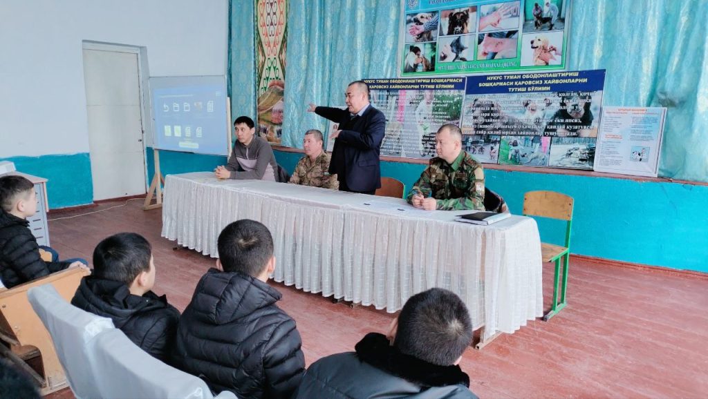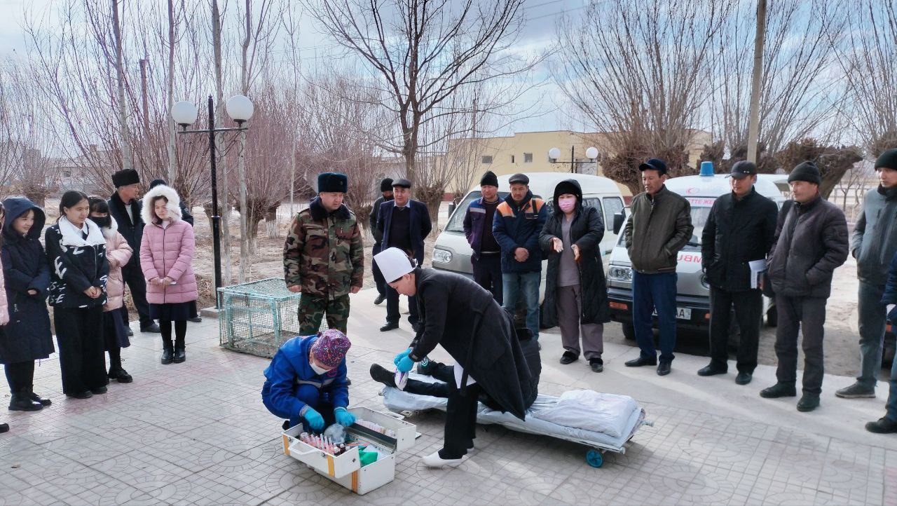 Оқыў шынығыўда, Нѳкис районы Ветеринария ҳәм шарўашылықты раўажландырыў бөлими, Айрықша жағдайлар бөлими, Медицина бирлеспеси, Санитария эпидемиология тынышлық ҳәм жәмийет саламатлығы бөлимлери тәрепинен кеселлик анықланған жағдайда, зәрүр эпидемияға қарсы иләжларды шөлкемлестириў бойынша басқарыў уйымларының күш ҳәм қуралларының өз-ара биргеликте ислесиўин ҳәмде кеселликтиң алдын алыў иләжлары әмелде  көрсетип берилди.