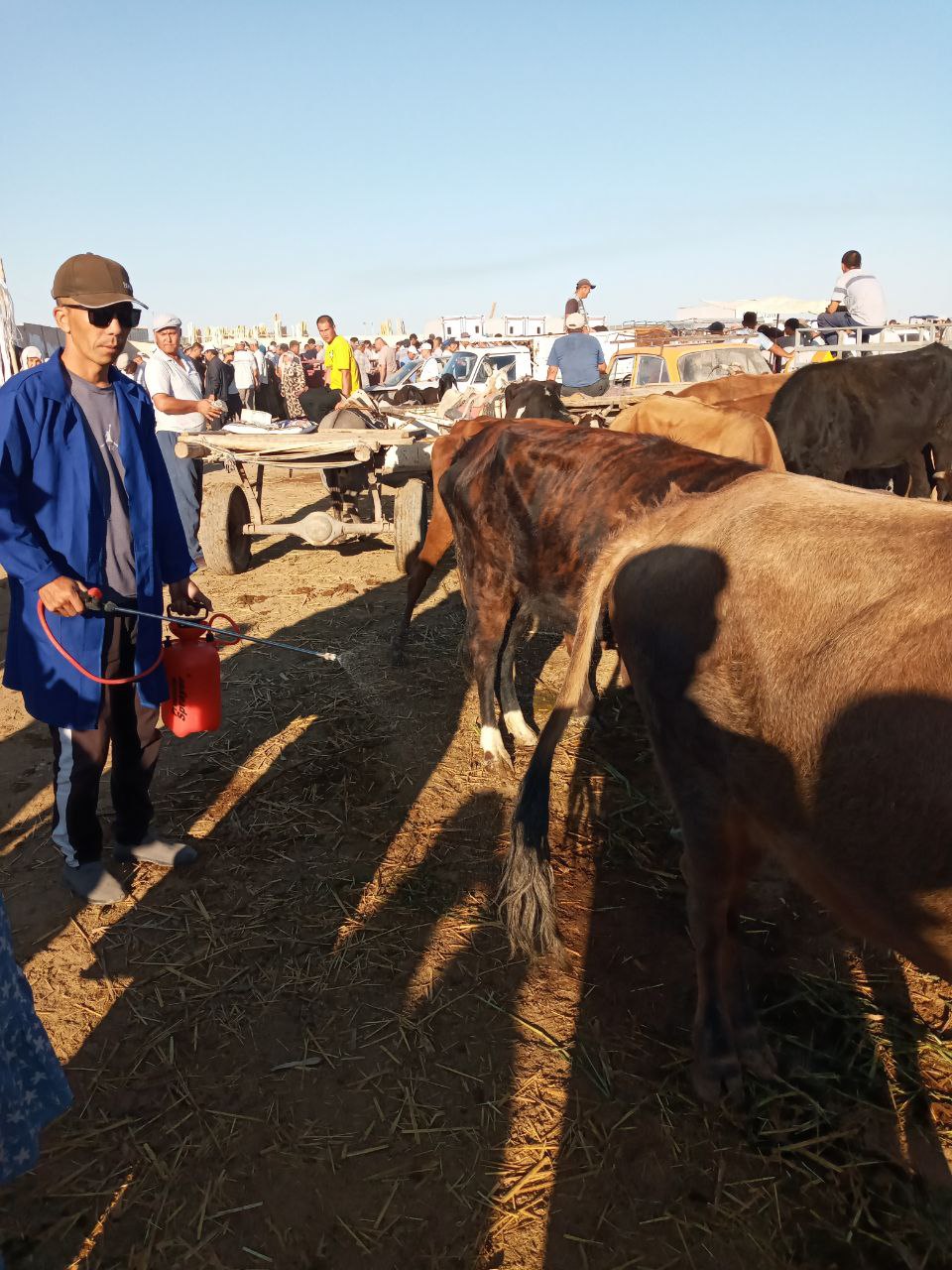 Атап айтқанда, Шымбай,Қараөзек, Қанлыкөл, Хожели Төрткүл, Беруний, Нөкис районларында  ветеринария ҳәм шарўашылықты раўажландырыў бөлими қәнигелери тәрепинен  ҚКГИ кеселлигиниң  алдын алыў мақсетинде шарўа базарларында ҳәмде шарўа маллары сақланатуғын орынларда эктопаразитлерге қарсы дезинсекция жумыслары шөлкемлестирилмекте.