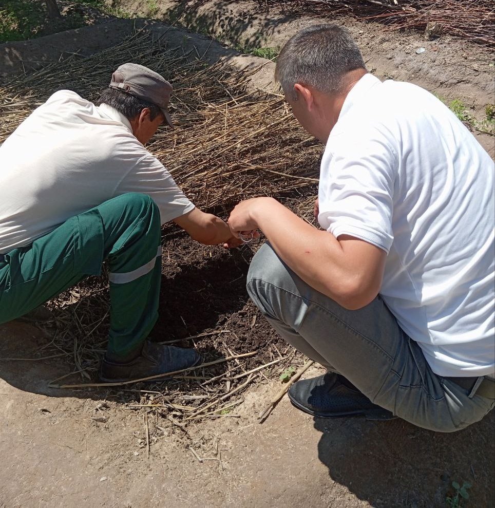 Шаңарақ басшысы өзиниң үй алды қыйтақ жеринде биогумус таярлаў арқалы егинлер ушын минералға бай топырақ ислеп, оны сатыўға шығармақта.