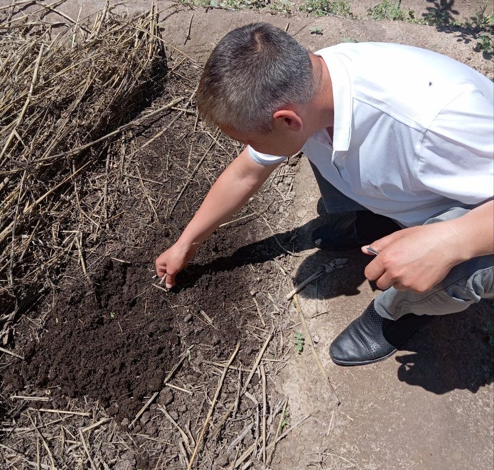 -Үйимиз алдында 6 сотих жеримиз бар. Жылда усы жерди тәрбиялап палыз өнимлери ҳәм мийўе нәллеринен мол зүрәәт аламыз. Атызымыздағы ерик, қәрели, алмалар пискен ўақтында гейде оларды сатып ақша тапсақ, көбинесе туўған-туўысқан, қоңсы-қобаға шелеклеп тарқатамыз. Ал, жыл сайын атызымызға еккен помидор, баклажан, қыярдан өним топлап мол, аўыл-аймаққа сатамыз. Быйыл аўылымызда хожалықлардың дәраматын арттырыў ушын көплеген имканиятлар жаратылды. Биз де бул имканиятлардан пайдаланып, үй алдында биогумус ушын орын таярладық. Оны бағыў, күтимин бериў, жетилистириў бойынша жол-жобаны районымыздағы ҳәм Нөкис қаласындағы бир қанша тәжирийбели иинсанлардан үйрендик. Ҳәзир топырағымыз жетилисип, қуртлар раўажланып атыр. Ҳәттеки, мийўелер, гүллер ушын топырақ бағыўға қуртларын сатып алып атырғанлар да бар –дейди БаҳадырАйтенов.