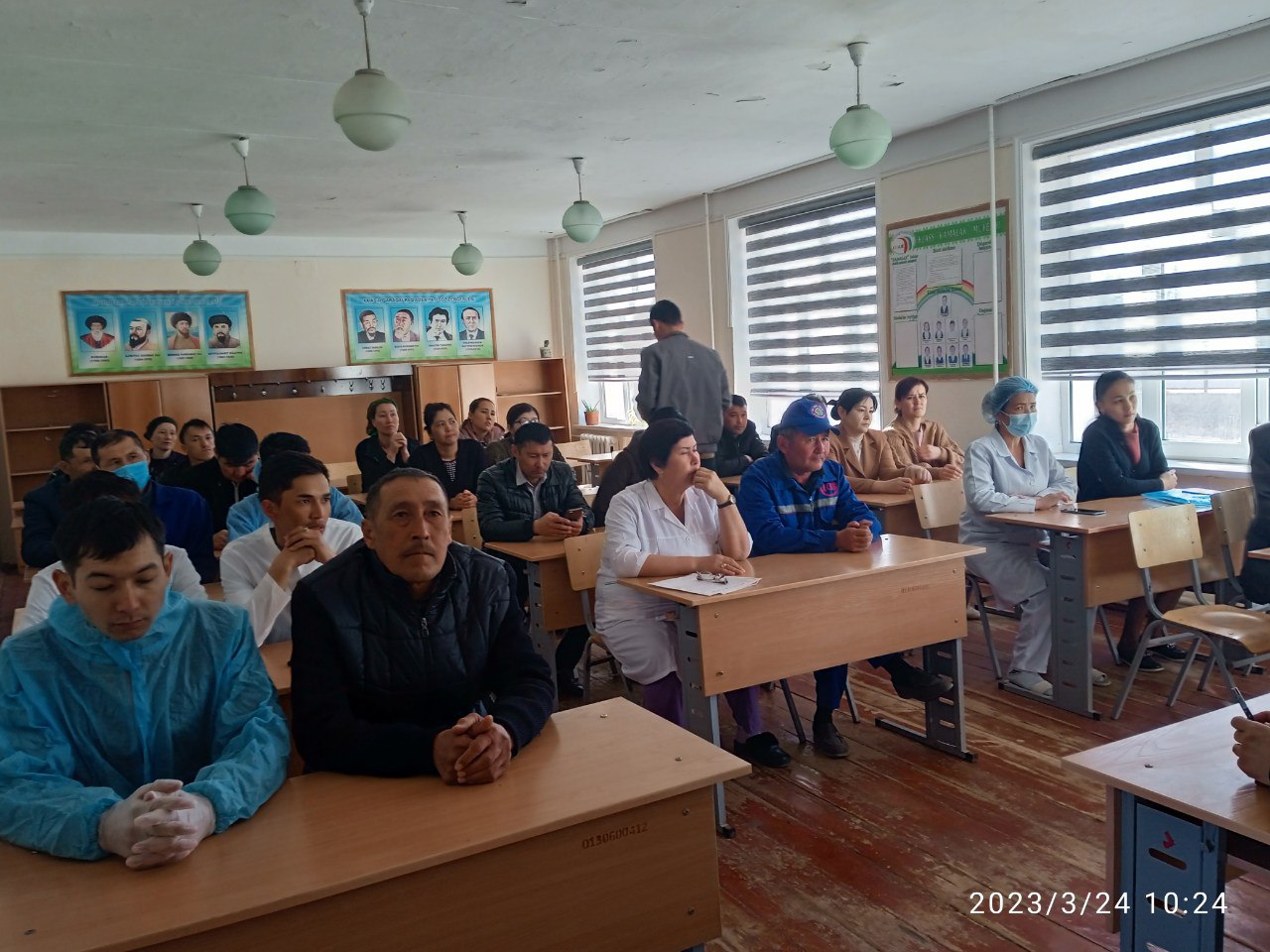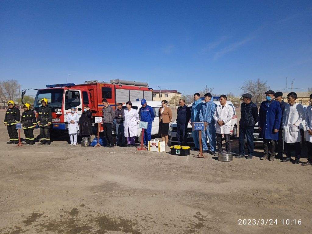 Оқыў шынығыўда, Шымбай районы Ветеринария ҳәм шарўашылықты раўажландырыў бөлими, Айрықша жағдайлар бөлими, Медицина бирлеспеси, Санитария эпидемиология тынышлық ҳәм жәмийет саламатлығы бөлимлери тәрепинен кеселлик анықланған жағдайда, зәрүр эпидемияға қарсы иләжларды шөлкемлестириў бойынша басқарыў уйымларының күш ҳәм қуралларының өз-ара биргеликте ислесиўин ҳәмде кеселликтиң алдын алыў иләжлары әмелде  көрсетип берилди.