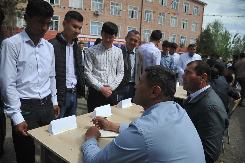 Илаж даўамында питкериўши курслардыӊ студентлери менен жумыс бериўшилер арасында сөйлесиўлер болды. Усы жердиӊ өзинде 23 питкериўши менен мийнет шәртнамасы дүзилип, бәнтлиги тәмийинленди.