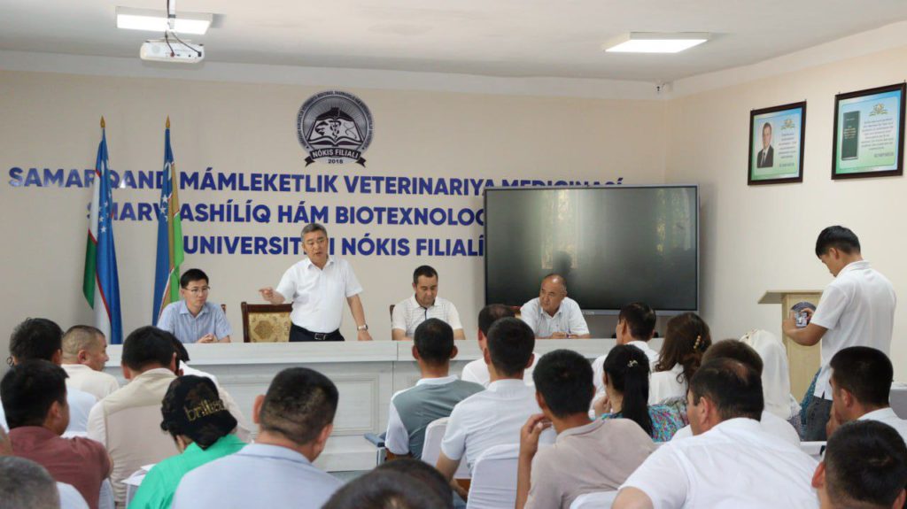 10-июнь күни Самарқанд мәмлекетлик ветеринария медицинасы, шарўашылық ҳәм биотехнологиялар университети Нөкис филиалында 2022-2023 оқыў жылында питкериўши студентлерди жумыс орынларына бөлистириў ҳәм бәнтлигин тәмийинлеў бойынша иләж болып өтти.