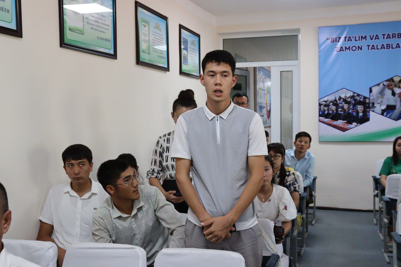 Иләж шеңберинде Қарақалпақстан Республикасы Ветеринария ҳәм шарўашылықты раўажландырыў комитети баслығы М.Т.Қайпанов студентлер менен сәўбетлесип, өзиниң искерлиги даўамында дус келген қыйыншылықларды терең билим, сабыр-тақат, уқыплылық бенен женип өткенлиги ҳаққындағы ядлары менен бөлисип, болажақ қәнигелерге пайдалы усынысларды айтып өтти.
