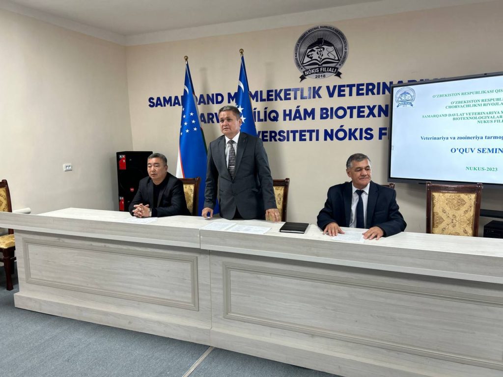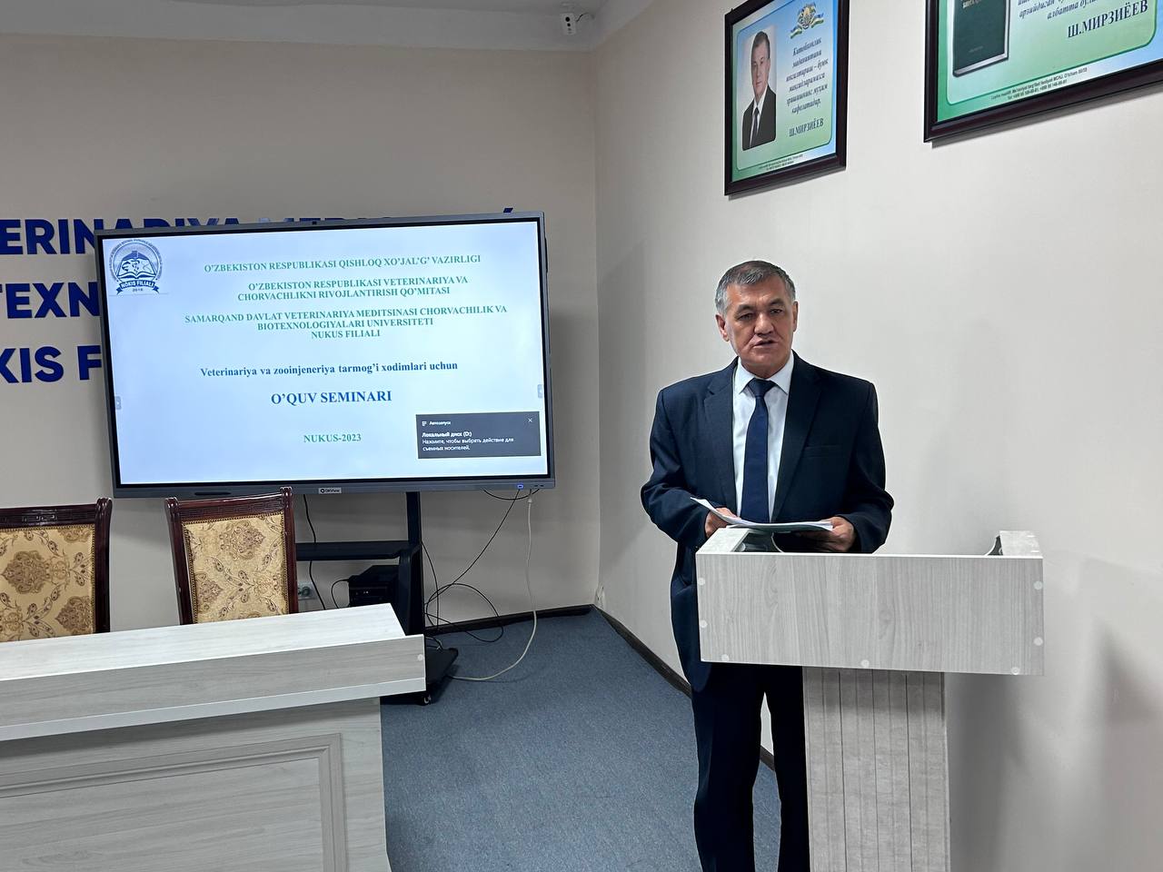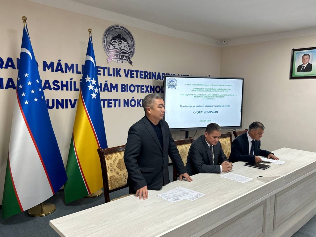 Бүгинги күнде бул хызметкерлердиң тараўдағы билим, көнликпелери ҳәм маманлығын асырыў мақсетинде, Самарканд мәмлекетлик ветеринария медицинаси, шарўашылық ҳәм биотехнологиялар университети Нөкис филиалында қысқа мүддетли оқыў семинар курслары шөлкемлестирилмекте.