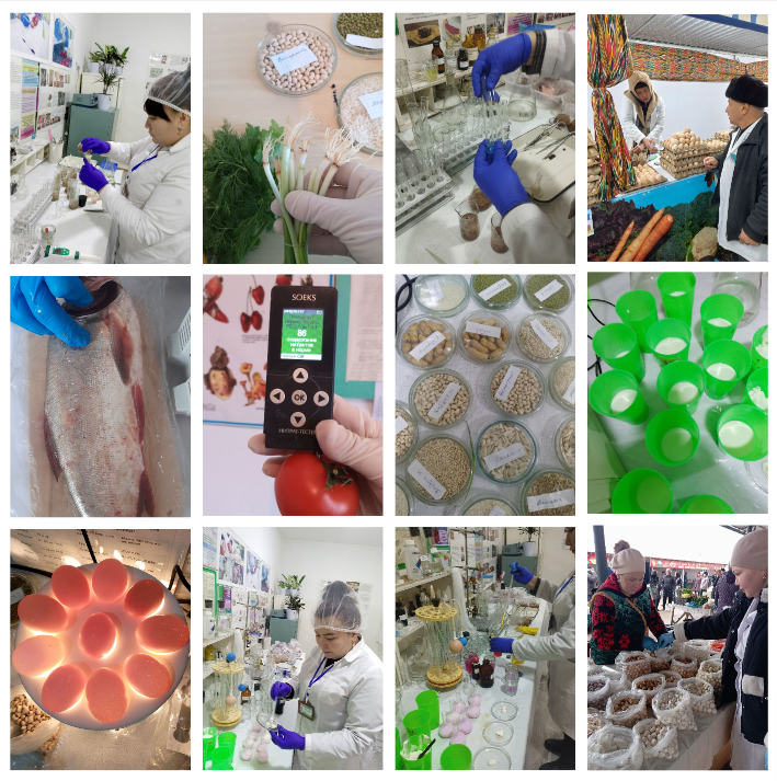 Атап айтқанда, Қанлыкөл, Шымбай, Төрткүл, Беруний, Кегейли, Бозатаў, ҳәм Тахтакөпир районларында Ветеринария ҳәм шарўашылықты раўажландырыў бөлими қәнигелери тәрепинен дийқан базарларындағы мийўе, палыз, мәйек, сүт ҳәм гөш өнимлериниң сапасын қадағалаў мақсетинде лабораториялық тексериўлерден өткерилмекте.